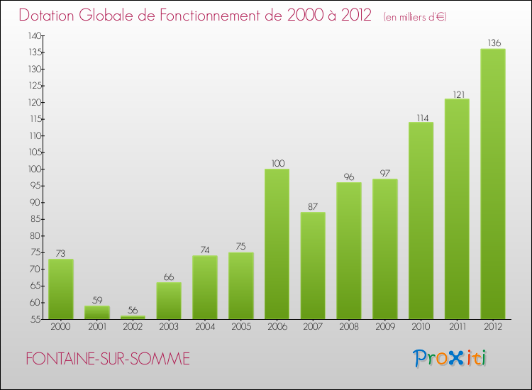 Le résultat comptable de la commune de Fontaine-sur-Somme s'établissait ainsi à : + 59 000 € fin 2012.