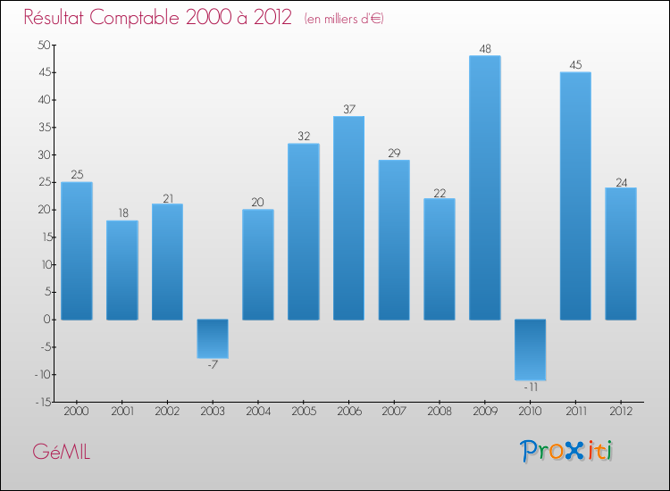 Le résultat comptable de la commune de Gémil s'établissait ainsi à : + 24 000 € fin 2012.