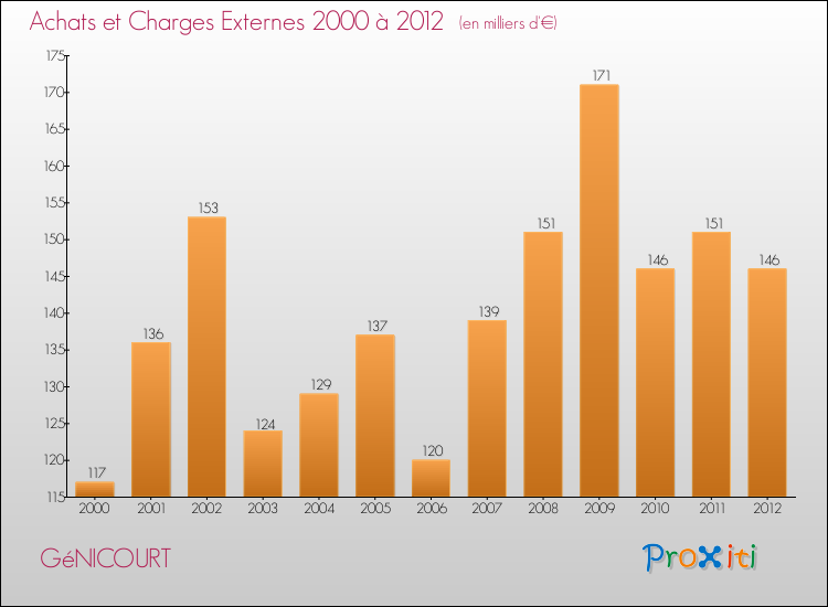 En 2012, les charges de fonctionnement de la commune de Génicourt étaient de : 539 000 € décomposées comme suit :