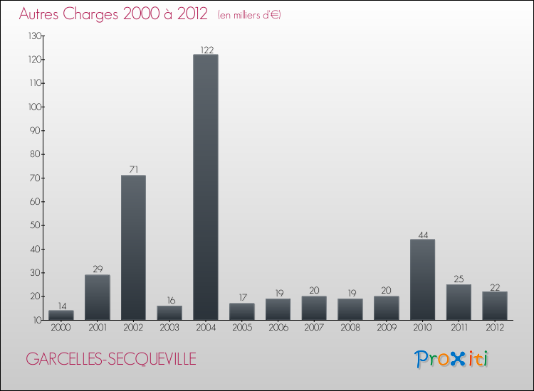 En 2012, les charges de fonctionnement de la commune de Garcelles-Secqueville étaient de : 318 000 € décomposées comme suit :
