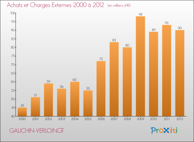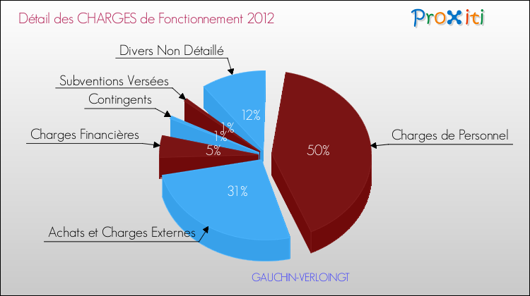 En 2012, les charges de fonctionnement de la commune de Gauchin-Verloingt étaient de : 289 000 € décomposées comme suit :