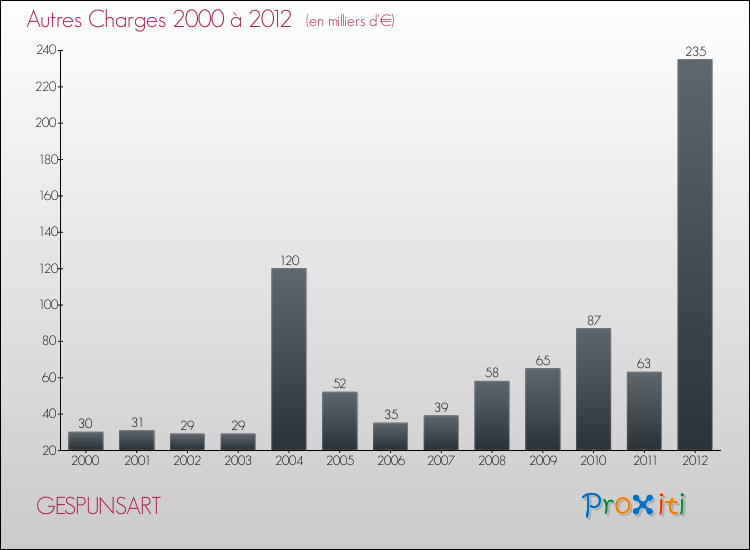 En 2012, les charges de fonctionnement de la commune de Gespunsart étaient de : 923 000 € décomposées comme suit :