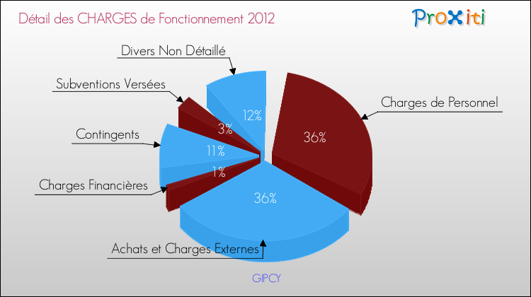 En 2012, les charges de fonctionnement de la commune de Gipcy étaient de : 151 000 € décomposées comme suit :