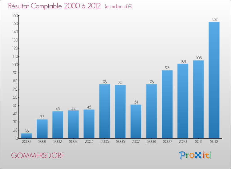 Evolution du résultat comptable pour GOMMERSDORF de 2000 à 2012