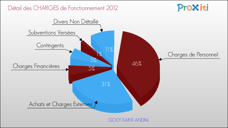 En 2012, les charges de fonctionnement de la commune de Gouy-Saint-André étaient de : 292 000 € décomposées comme suit :