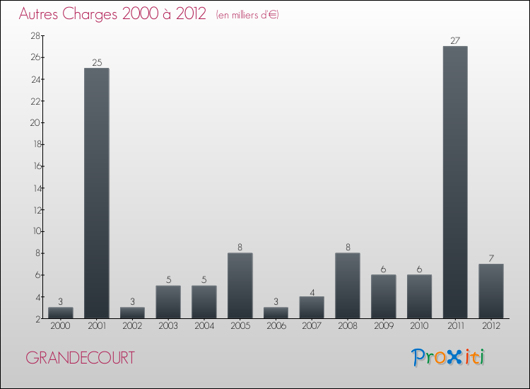 En 2012, les charges de fonctionnement de la commune de Grandecourt étaient de : 25 000 € décomposées comme suit :
