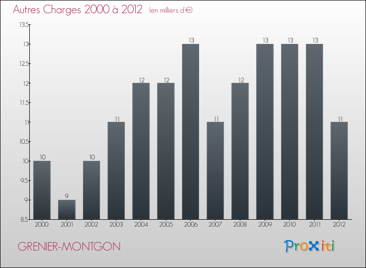 En 2012, les charges de fonctionnement de la commune de Grenier-Montgon étaient de : 82 000 € décomposées comme suit :