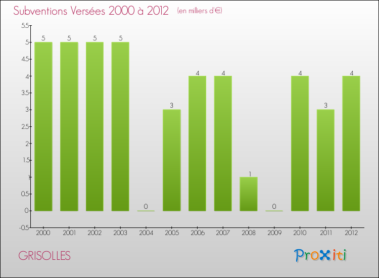 Evolution du résultat comptable pour GRISOLLES de 2000 à 2012