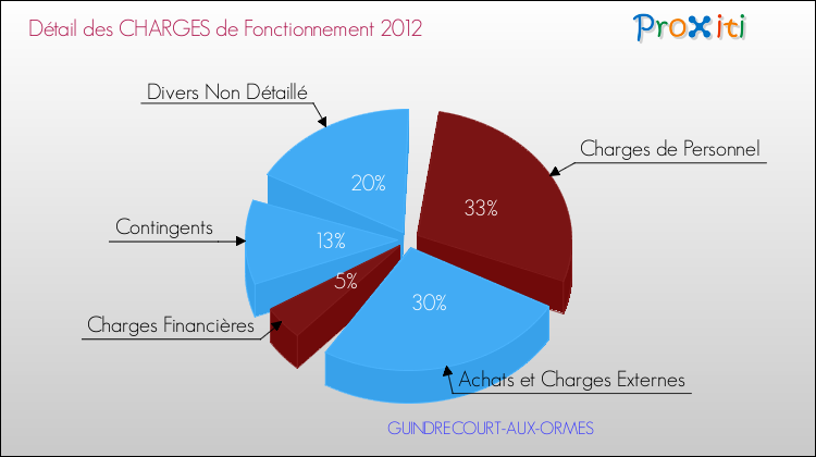 En 2012, les charges de fonctionnement de la commune de Guindrecourt-aux-Ormes étaient de : 40 000 € décomposées comme suit :