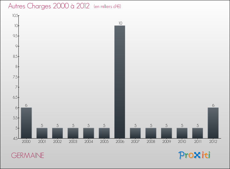 En 2012, les charges de fonctionnement de la commune de Germaine étaient de : 40 000 € décomposées comme suit :