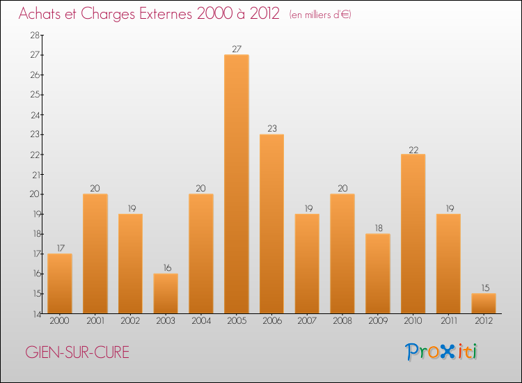 En 2012, les charges de fonctionnement de la commune de Gien-sur-Cure étaient de : 119 000 € décomposées comme suit :