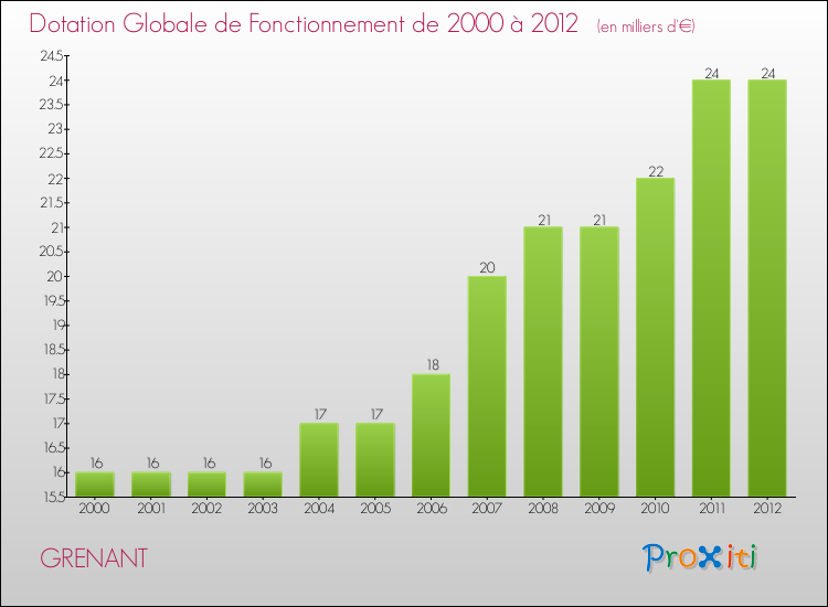 Le résultat comptable de la commune de Grenant s'établissait ainsi à : -3 000 € fin 2012 (recettes-dépenses).