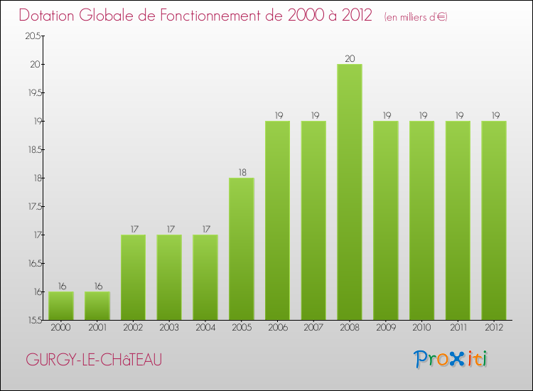 En 2012, le budget de fonctionnement de la commune de Gurgy-le-Château se montait à : 87 000 € décomposé comme suit :