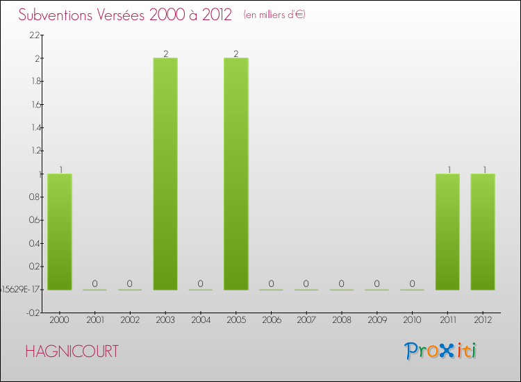 Le résultat comptable de la commune de Hagnicourt s'établissait ainsi à : + 1 000 € fin 2012.