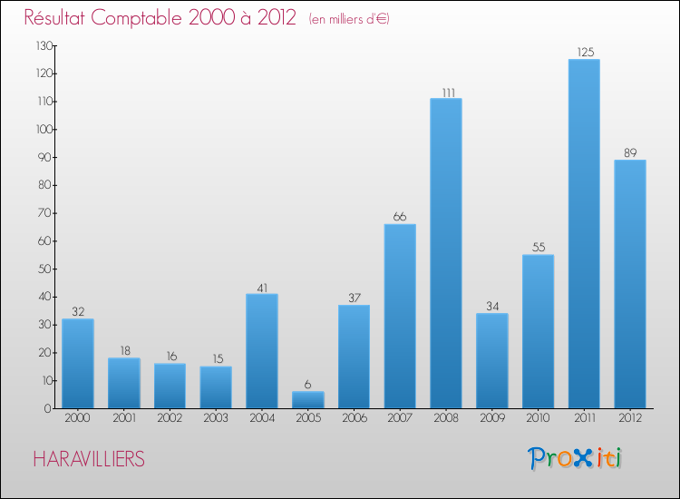 Le résultat comptable de la commune de Haravilliers s'établissait ainsi à : + 89 000 € fin 2012.