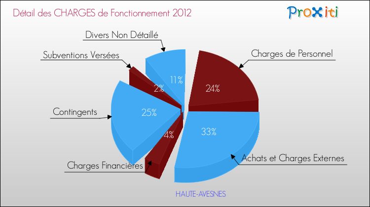 En 2012, les charges de fonctionnement de la commune de Haute-Avesnes étaient de : 185 000 € décomposées comme suit :
