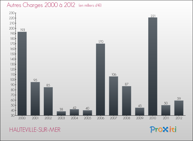 En 2012, les charges de fonctionnement de la commune de Hauteville-sur-Mer étaient de : 604 000 € décomposées comme suit :