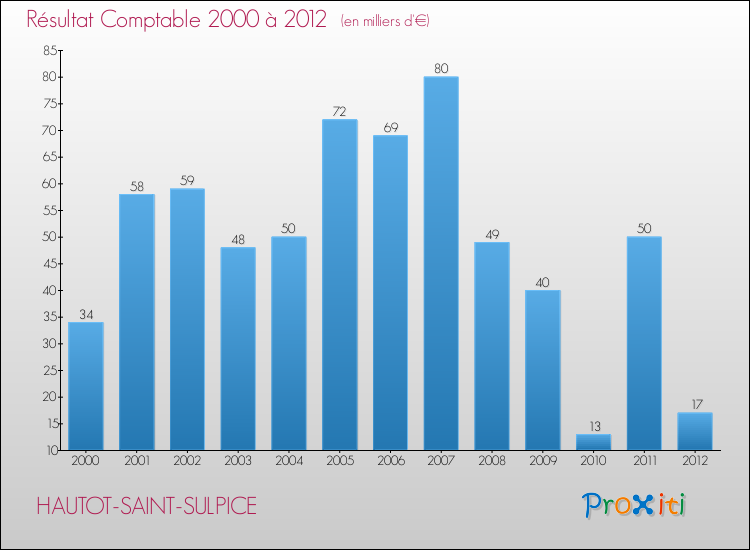 Le résultat comptable de la commune de Hautot-Saint-Sulpice s'établissait ainsi à : + 17 000 € fin 2012.