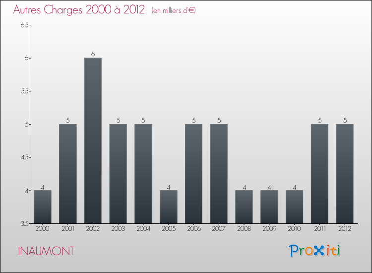 En 2012, les charges de fonctionnement de la commune de Inaumont étaient de : 27 000 € décomposées comme suit :