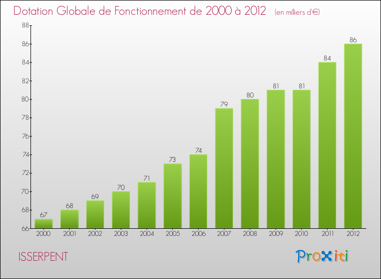 En 2012, le budget de fonctionnement de la commune de Isserpent se montait à : 275 000 € décomposé comme suit :