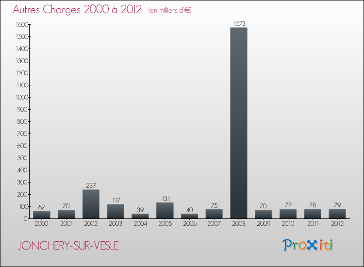 En 2012, les charges de fonctionnement de la commune de Jonchery-sur-Vesle étaient de : 821 000 € décomposées comme suit :