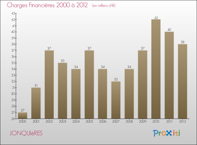 En 2012, les charges de fonctionnement de la commune de Jonquières étaient de : 353 000 € décomposées comme suit :