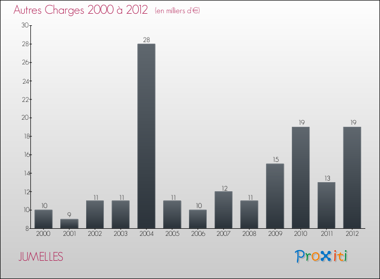 En 2012, les charges de fonctionnement de la commune de Jumelles étaient de : 93 000 € décomposées comme suit :