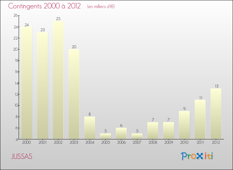 En 2012, le budget de fonctionnement de la commune de Jussas se montait à : 81 000 € décomposé comme suit :