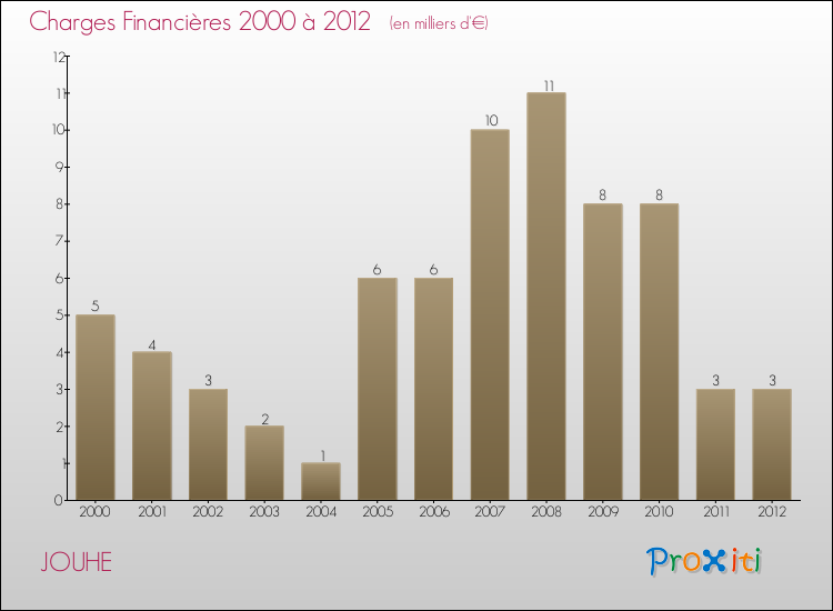 En 2012, les charges de fonctionnement de la commune de Jouhe étaient de : 192 000 € décomposées comme suit :
