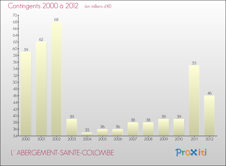 En 2012, le budget de fonctionnement de la commune de L' Abergement-Sainte-Colombe se montait à : 474 000 € décomposé comme suit :