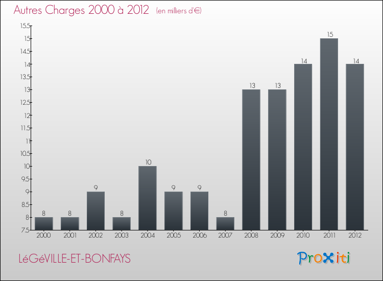 En 2012, les charges de fonctionnement de la commune de Légéville-et-Bonfays étaient de : 38 000 € décomposées comme suit :