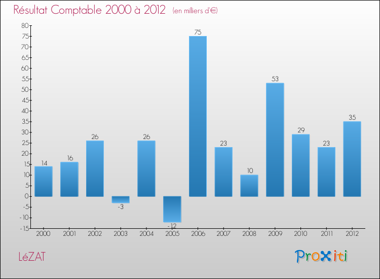 Le résultat comptable de la commune de Lézat s'établissait ainsi à : + 35 000 € fin 2012.