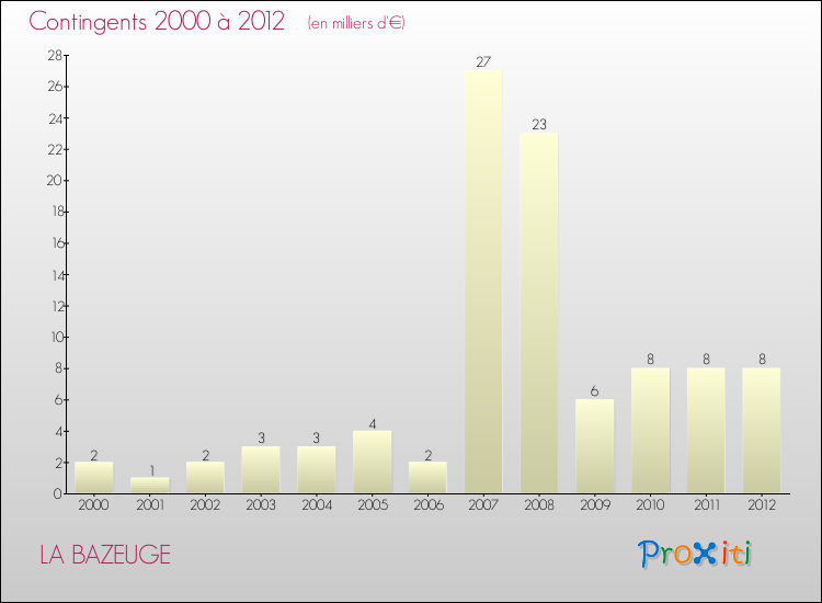 Le résultat comptable de la commune de La Bazeuge s'établissait ainsi à : + 5 000 € fin 2012.