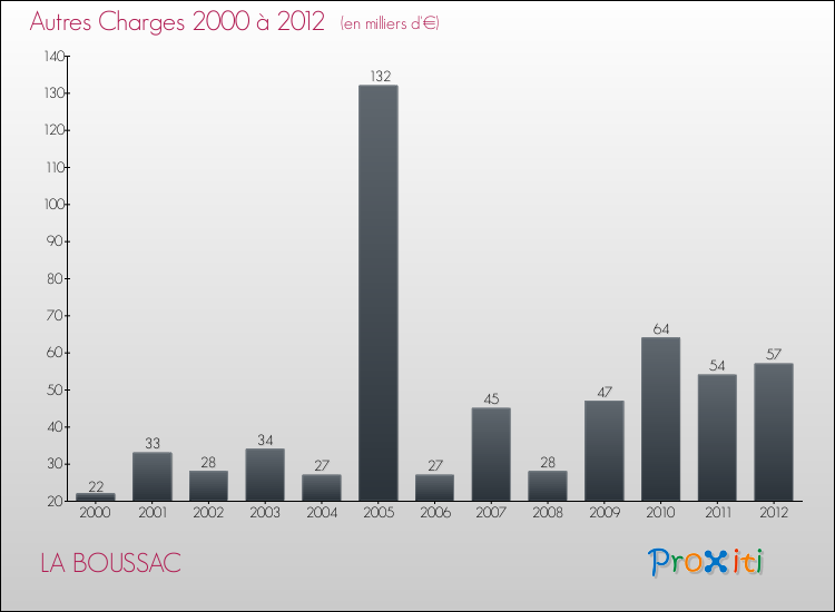 En 2012, les charges de fonctionnement de la commune de La Boussac étaient de : 567 000 € décomposées comme suit :