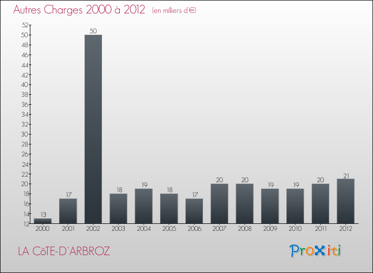 En 2012, les charges de fonctionnement de la commune de La Côte-d'Arbroz étaient de : 178 000 € décomposées comme suit :