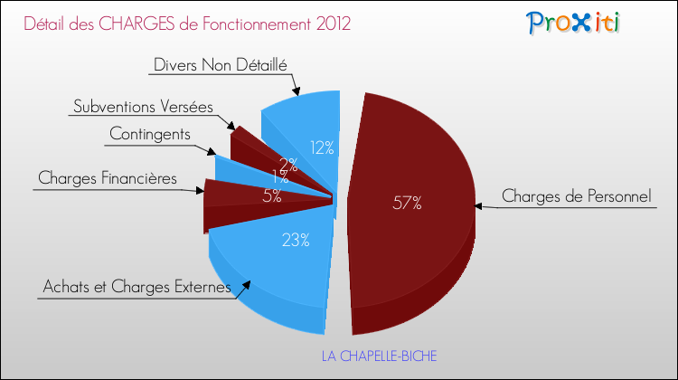 En 2012, les charges de fonctionnement de la commune de La Chapelle-Biche étaient de : 196 000 € décomposées comme suit :