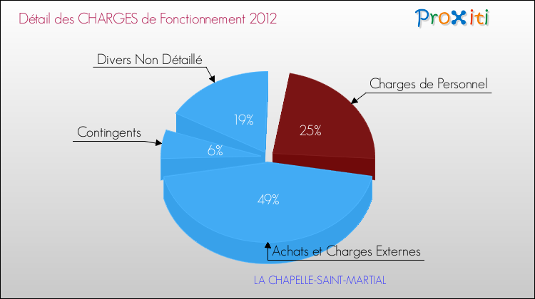 En 2012, les charges de fonctionnement de la commune de La Chapelle-Saint-Martial étaient de : 63 000 € décomposées comme suit :