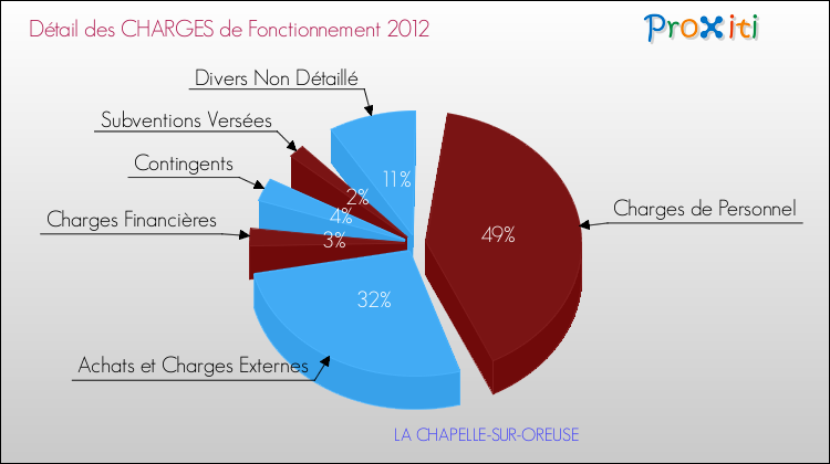 En 2012, les charges de fonctionnement de la commune de La Chapelle-sur-Oreuse étaient de : 449 000 € décomposées comme suit :