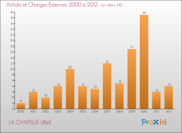 En 2012, les charges de fonctionnement de la commune de La Chapelle-Urée étaient de : 55 000 € décomposées comme suit :
