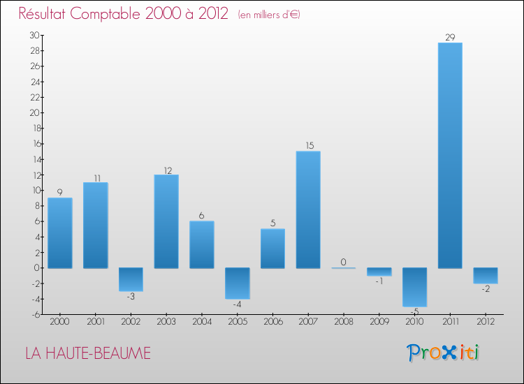 Le résultat comptable de la commune de La Haute-Beaume s'établissait ainsi à : -2 000 € fin 2012 (recettes-dépenses).