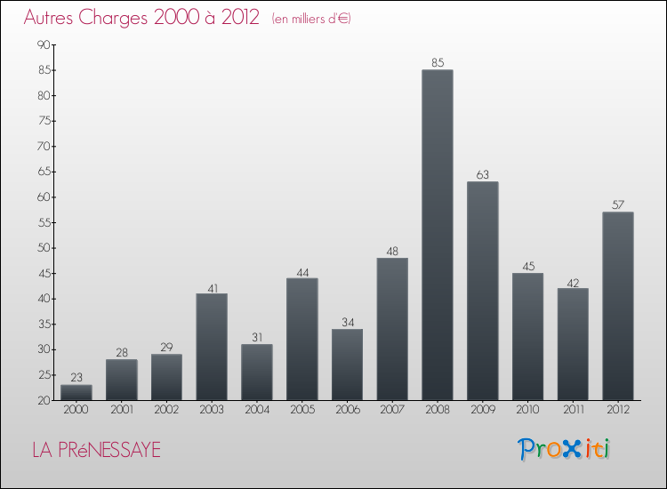 En 2012, les charges de fonctionnement de la commune de La Prénessaye étaient de : 452 000 € décomposées comme suit :