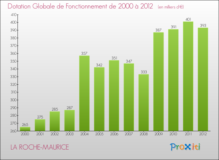 En 2012, les charges de fonctionnement de la commune de La Roche-Maurice étaient de : 973 000 € décomposées comme suit :