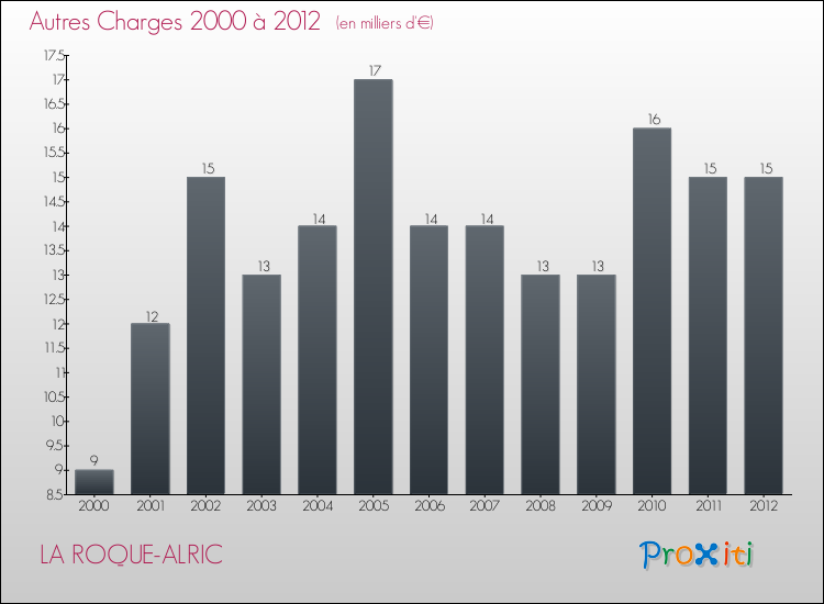 En 2012, les charges de fonctionnement de la commune de La Roque-Alric étaient de : 76 000 € décomposées comme suit :