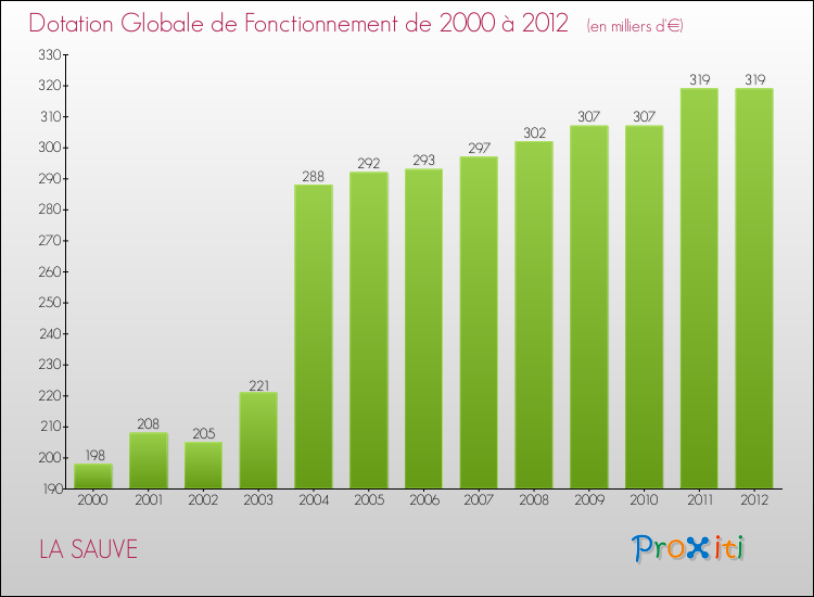 En 2012, le budget de fonctionnement de la commune de La Sauve se montait à : 935 000 € décomposé comme suit :