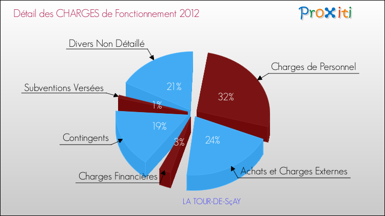 En 2012, les charges de fonctionnement de la commune de La Tour-de-Sçay étaient de : 95 000 € décomposées comme suit :