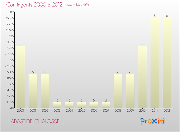 En 2012, le budget de fonctionnement de la commune de Labastide-Chalosse se montait à : 90 000 € décomposé comme suit :