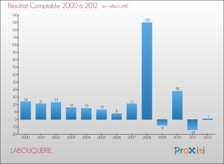 Le résultat comptable de la commune de Labouquerie s'établissait ainsi à : + 1 000 € fin 2012.