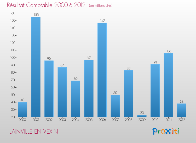 Le résultat comptable de la commune de Lainville-en-Vexin s'établissait ainsi à : + 38 000 € fin 2012.