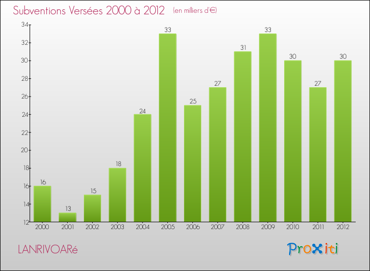 Le résultat comptable de la commune de Lanrivoaré s'établissait ainsi à : + 296 000 € fin 2012.