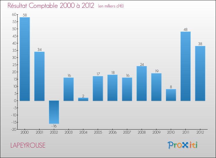 Le résultat comptable de la commune de Lapeyrouse s'établissait ainsi à : + 38 000 € fin 2012.